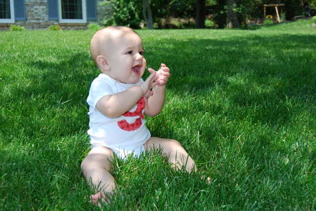 Majorly behind on blog posts. This summer has been a whirlwind of activity for us! Lots and lots of fun activities and visitor and trips. There is much to blog about. I am going to try to catch up starting with Charlie's 9 and 10 month photo shoots. He is our super happy, smiley and FUN baby. He is pretty laid back for the most part. His fussy moments are really just when he is tired or hungry. We were struggling a bit to get him to eat solid foods, but finally he seems to have caught on and is eating really well. His first two words have been ball and WOW. He will say the word wow over and over and over again and often lifts up his arms like he is really impressed with the world around him, accompanied by a long, "Wowwwww". He is really starting to notice everything and wants to touch, jiggle and suck on anything and everything around him. He has started to pull himself up onto the couch and table and can easily sit up on his own. He still does his own 'Charlie crawl', which is a strange scooting army thing, but he gets where he wants to go in lightning speed. At 10 months old he had 6 teeth. Four on top and two on the bottom.